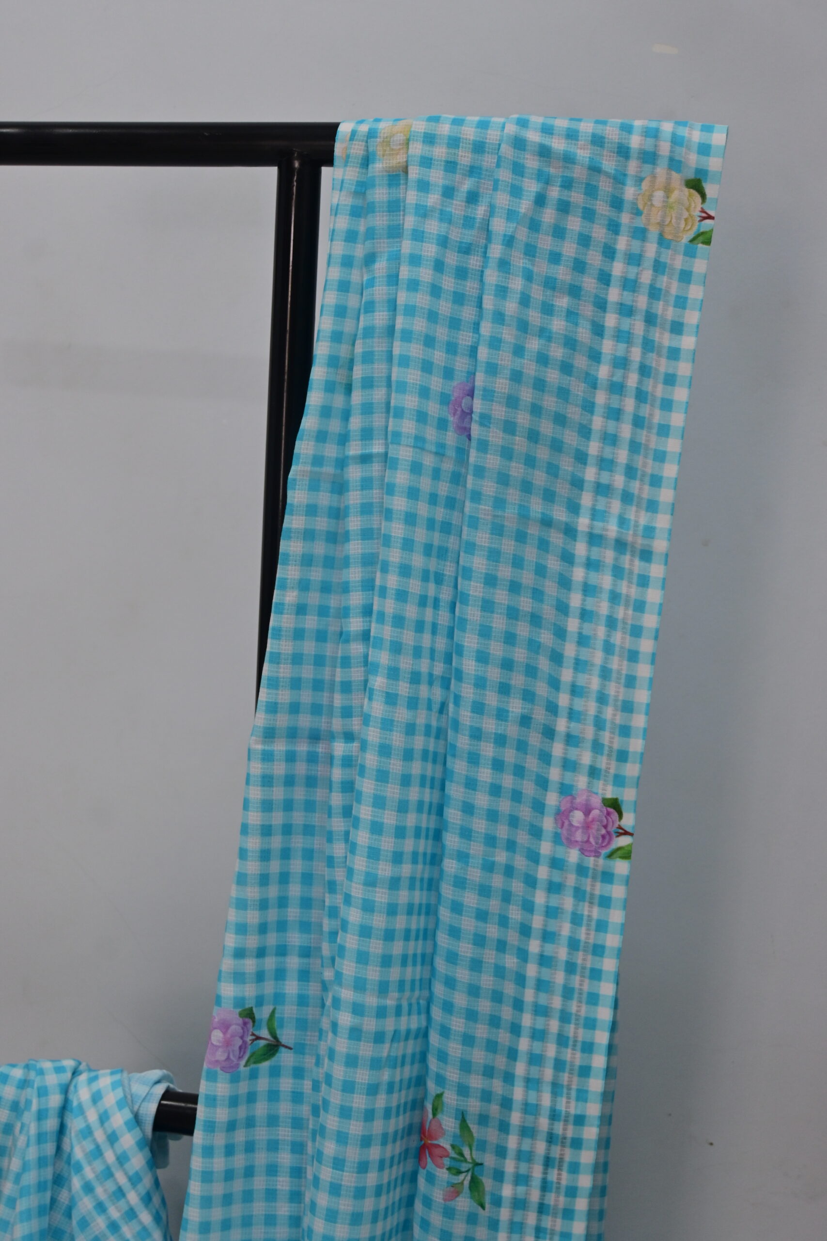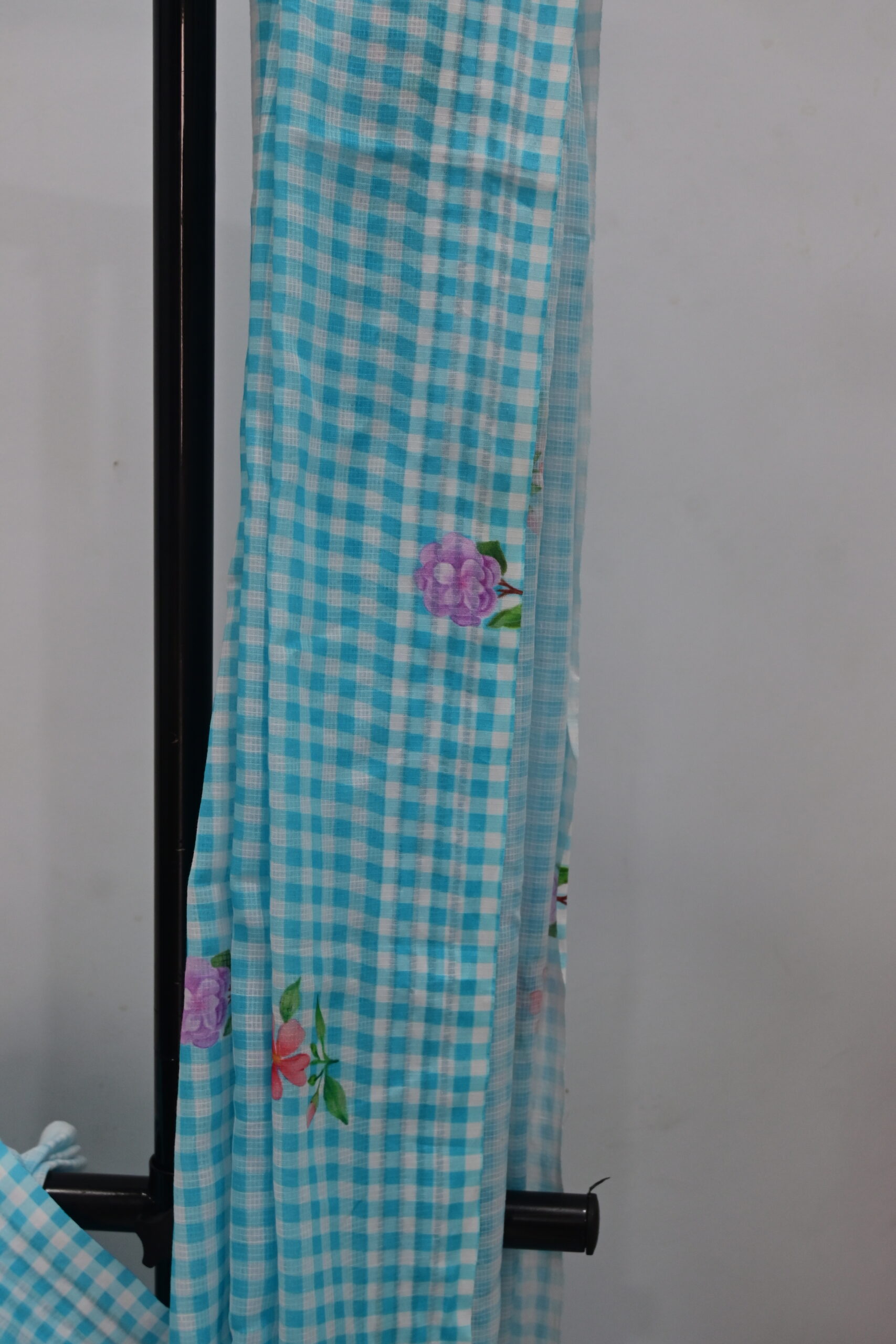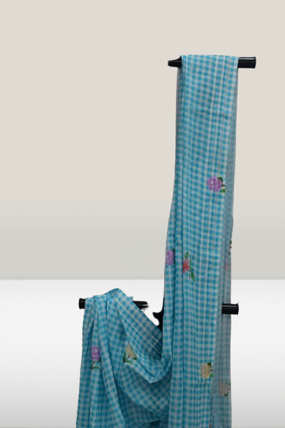 • Design: Aqua blue gingham checks with delicate floral prints
